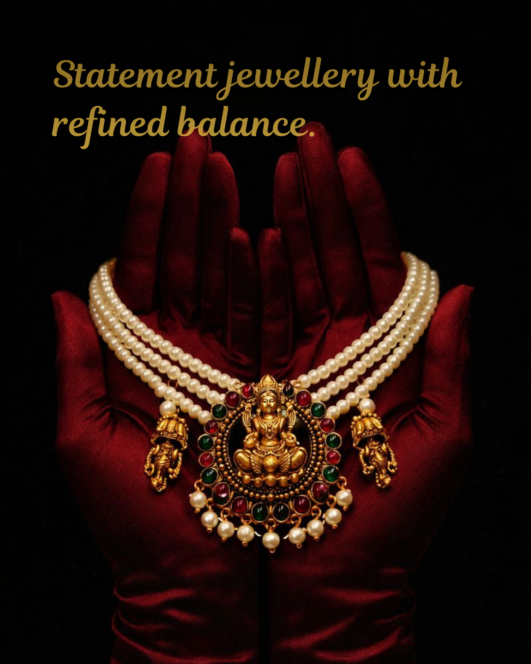 LAKSHMI PENDANT WITH PEARL CHOCKER SET