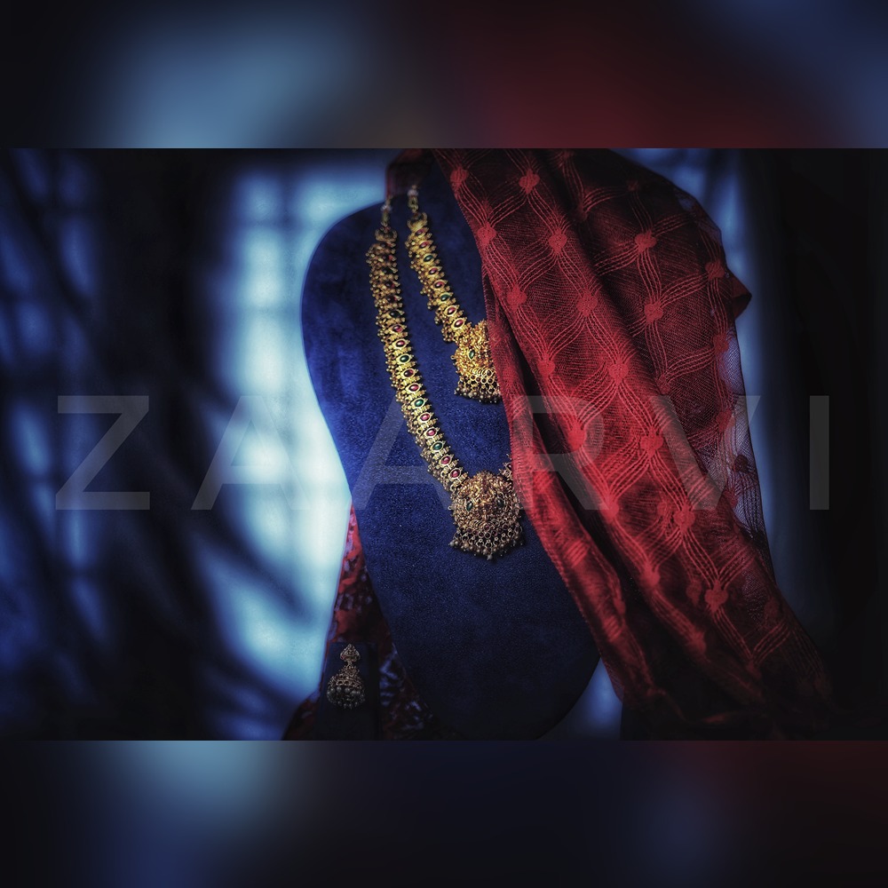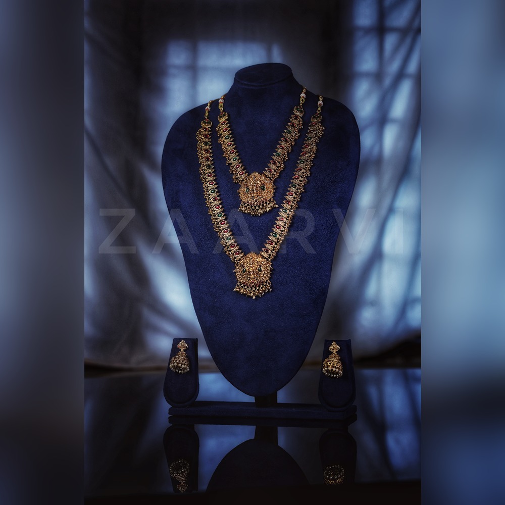 Length: Includes a medium-length necklace and a long haram for a layered bridal style.