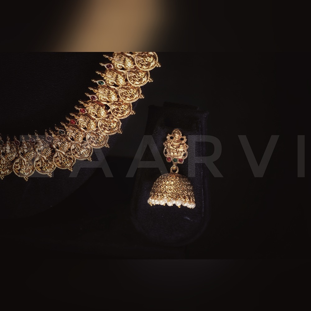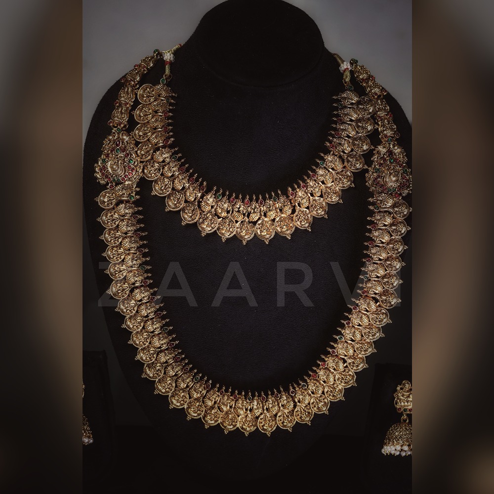 Finish: Gold toned antique finish with Lakshmi coin detailing.