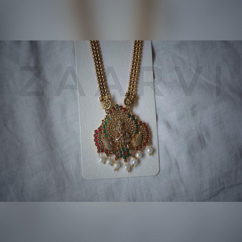 Design: Traditional long haram chain with multistone embellishments and pearl drop detailing.